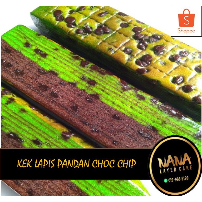 Nanalayercake Kek Lapis Pandan Chocolate Chip 2 X8 Premium Shopee Malaysia